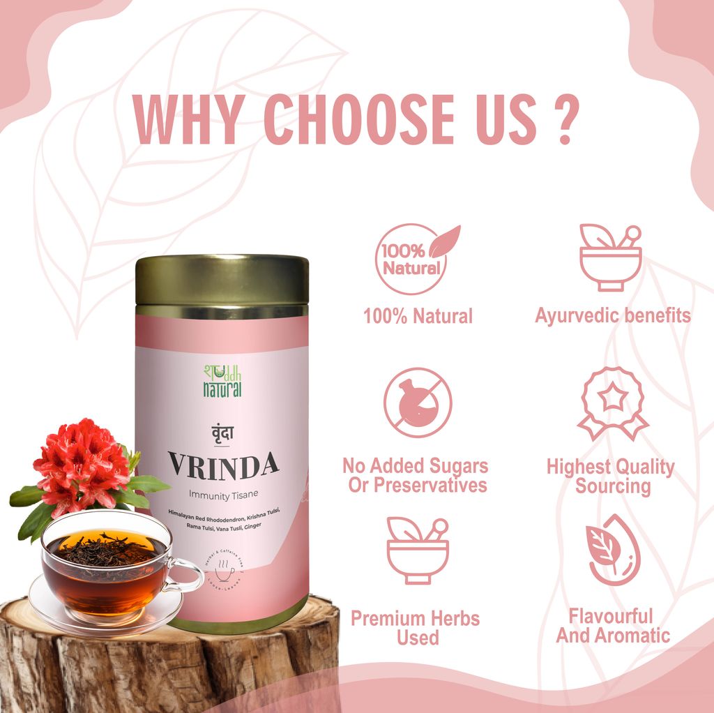 - Rich with Natural Antioxidants & Flavonoids. The perfect brew Add 1gm of VRINDA to 200ml water at 80 C.