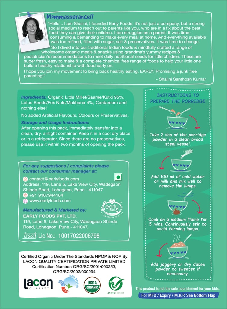 - Pack 2 - Organic Little Millet and Makhana Porridge Mix 200g