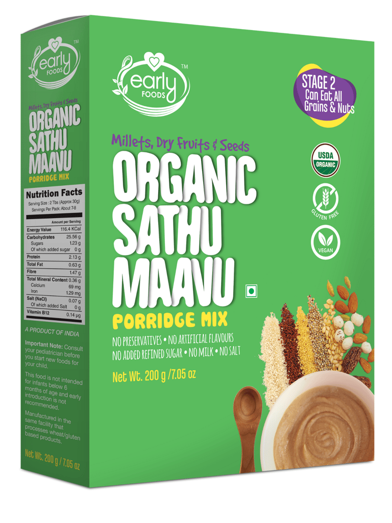 - Freshly prepared variety of certified organic millet porridges for your little ones