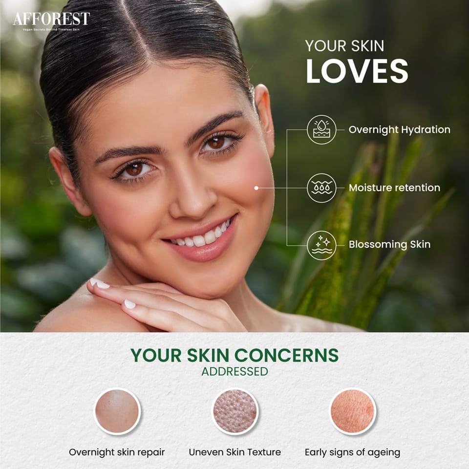 • Vitamin E provides overnight hydration to the skin and licorice extract works at reducing dark spots on the skin.
