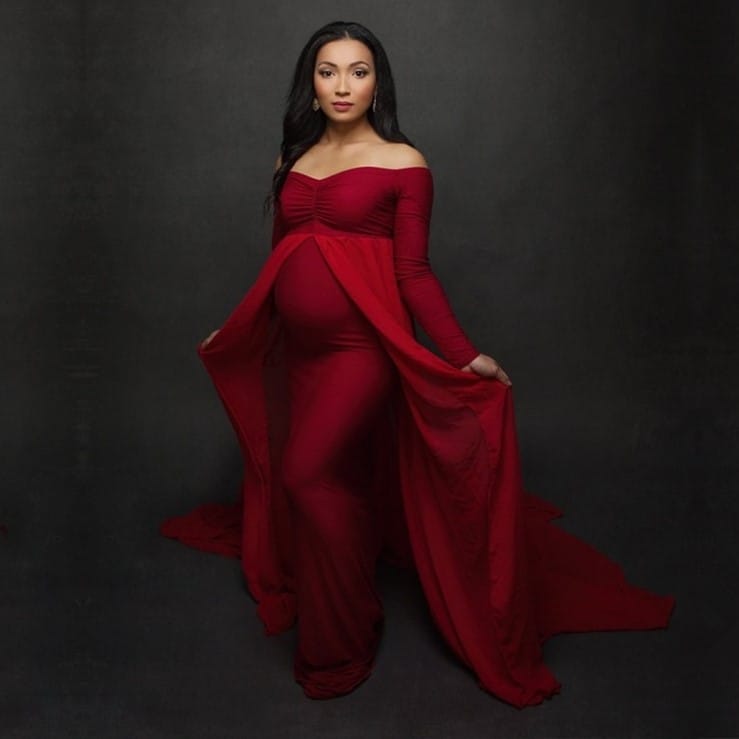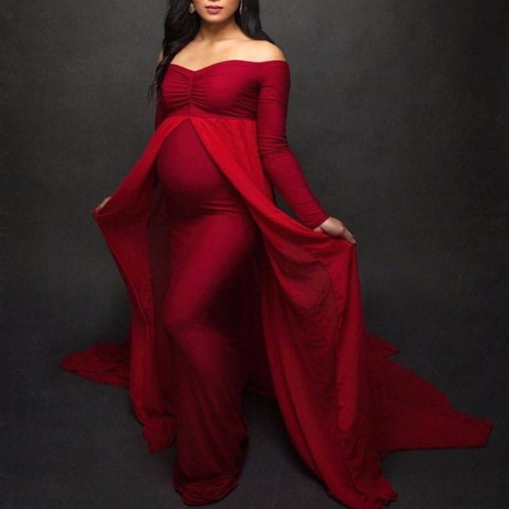 - Maternity long dress for photography is perfect for pregnant ladies who want to look stylish and elegant | ?? DESIGN: Women's off shoulder mermaid tulle cotton maternity photography dress, features off shoulder, long sleeve, ruched ruffle sweetheart v-neck, long dress, floor length, tailored to slim and accentuate the waist.