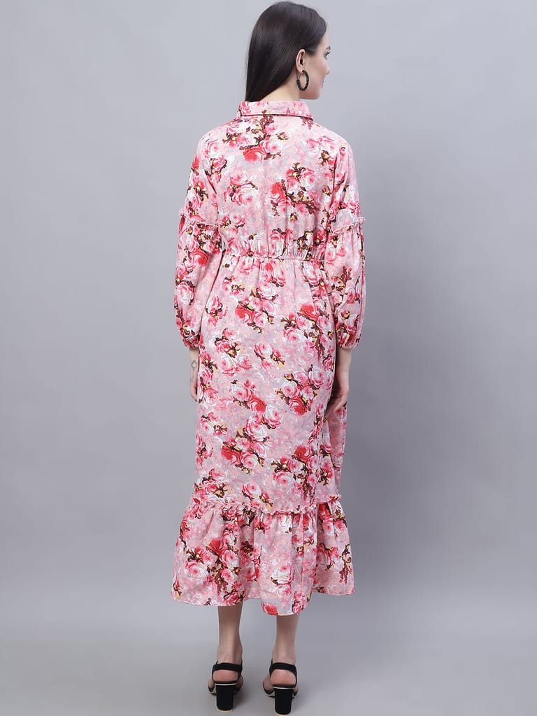 Moms Maternity Women's Maternity Crepe Floral Print Pink Midi Dress