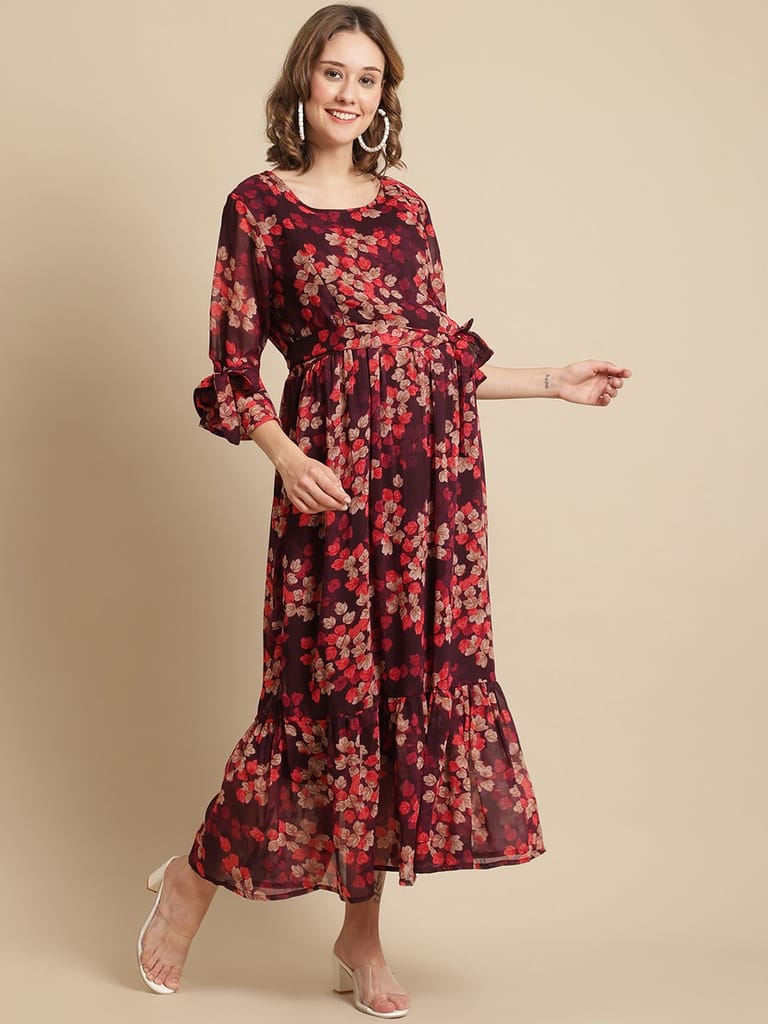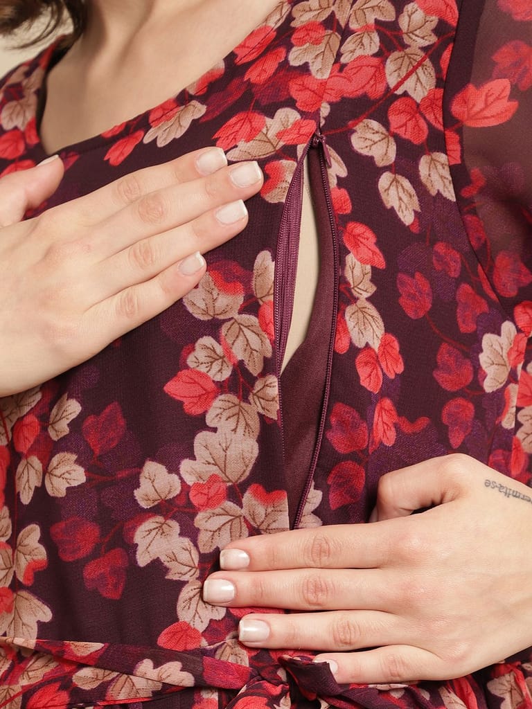 Moms Maternity Women's Maternity Georgette Floral Print Purple Color Maxi Dress