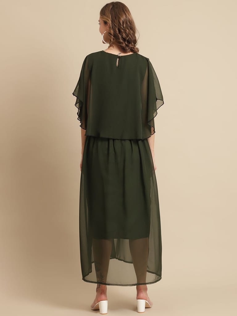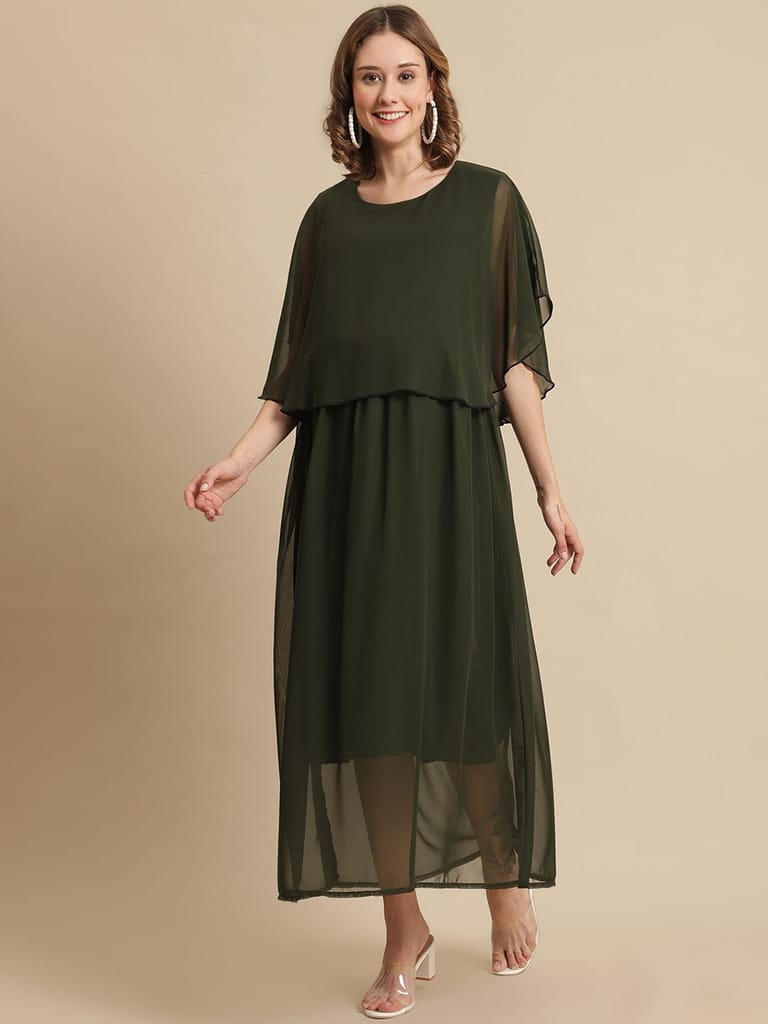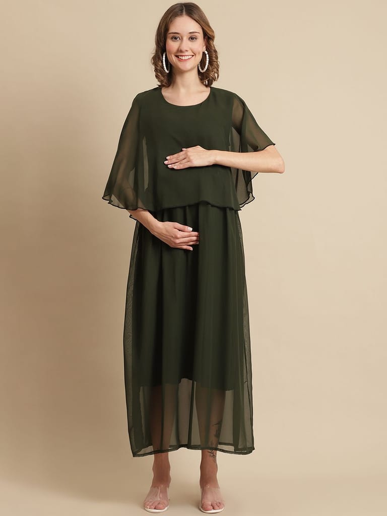Moms Maternity Women's Maternity Georgette Solid Olive Color Midi Empire Dress