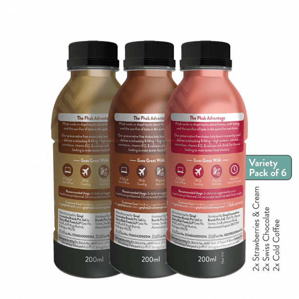 - Phab Protein Milkshake with Immunity Boosters 17g Milk Protein, No added sugar, Vitamin B12 & Calcium Rich:Pack of 6x 200ml (Variety Pack)