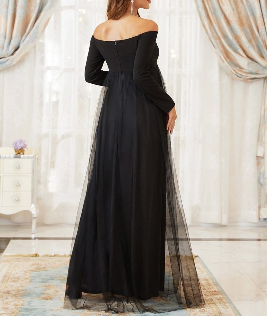 Plum and Peaches Elegant Off Shoulder Black Maternity Dress