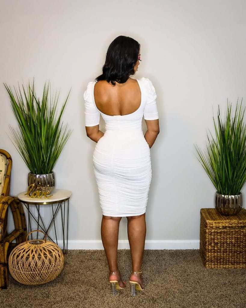 - Midi length here is the best idea because it highlights your figure in the best way.