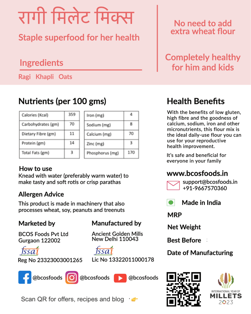- Our multi millet flour is a combination of Ragi, Sorghum, Barley, Oats, Khapli.