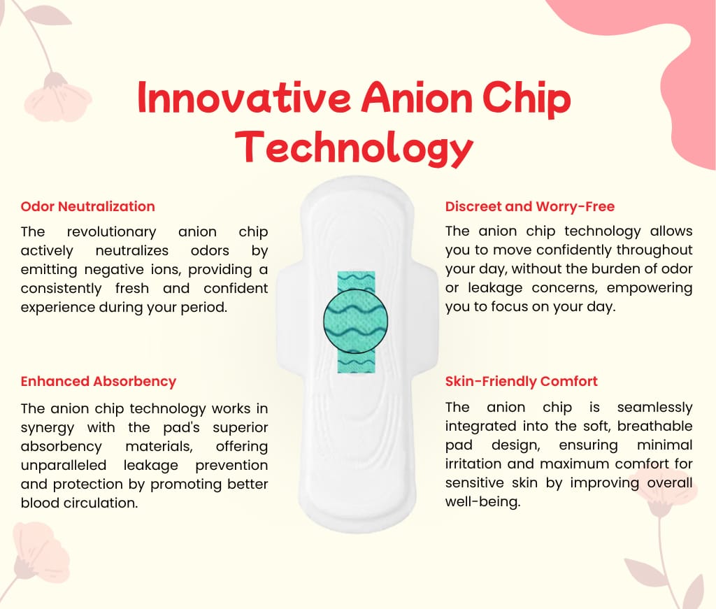- Thanks to ANION chip technology, these pads offer rapid absorption and long-lasting dryness.