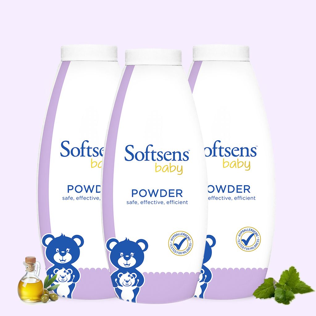Babies have extremely sensitive skin which is prone to rashes and irritations that are caused by skin friction and sweat. Softsens Baby Powder gently absorbs excess moisture, and soothes and protects your baby's delicate skin, leaving it nourished and healthy