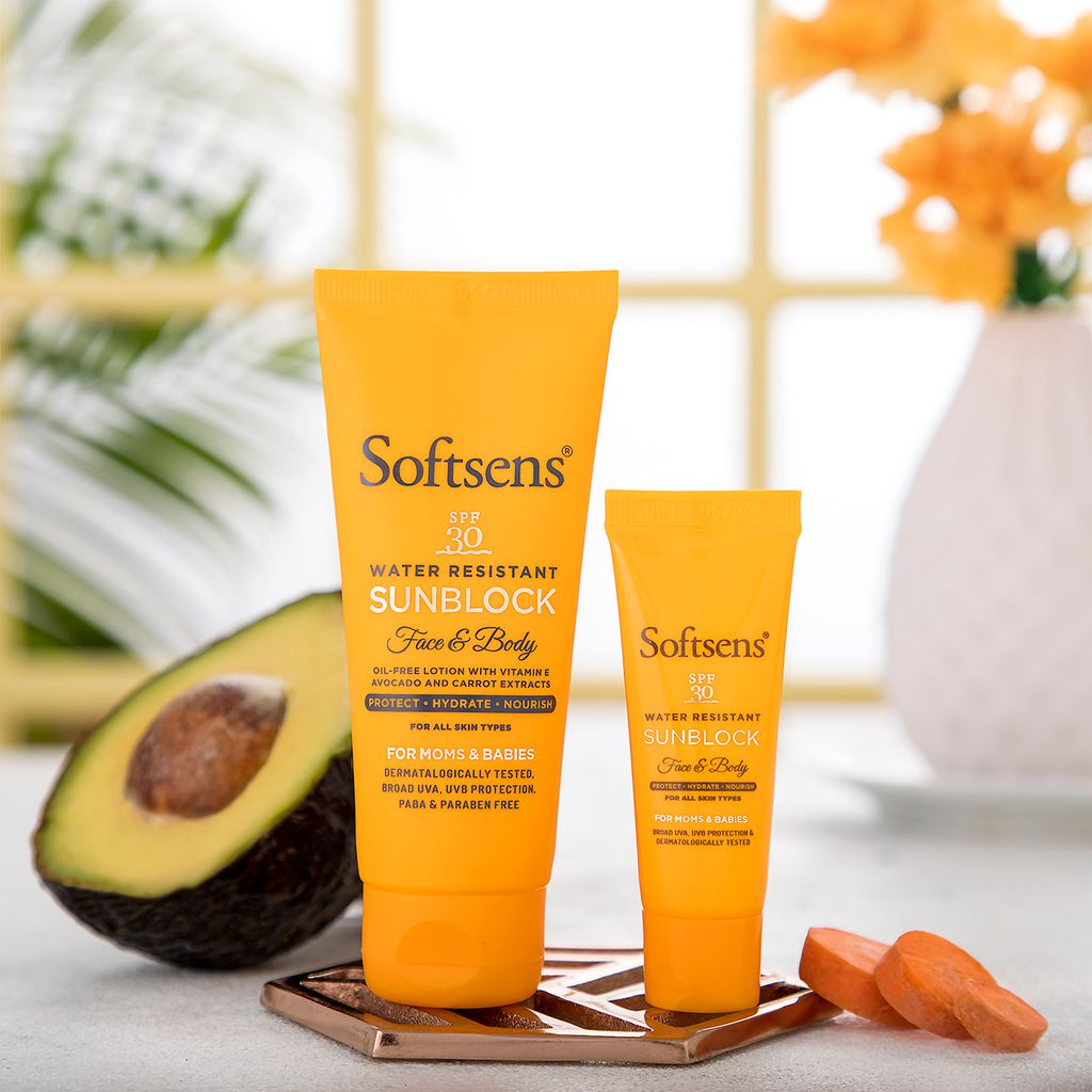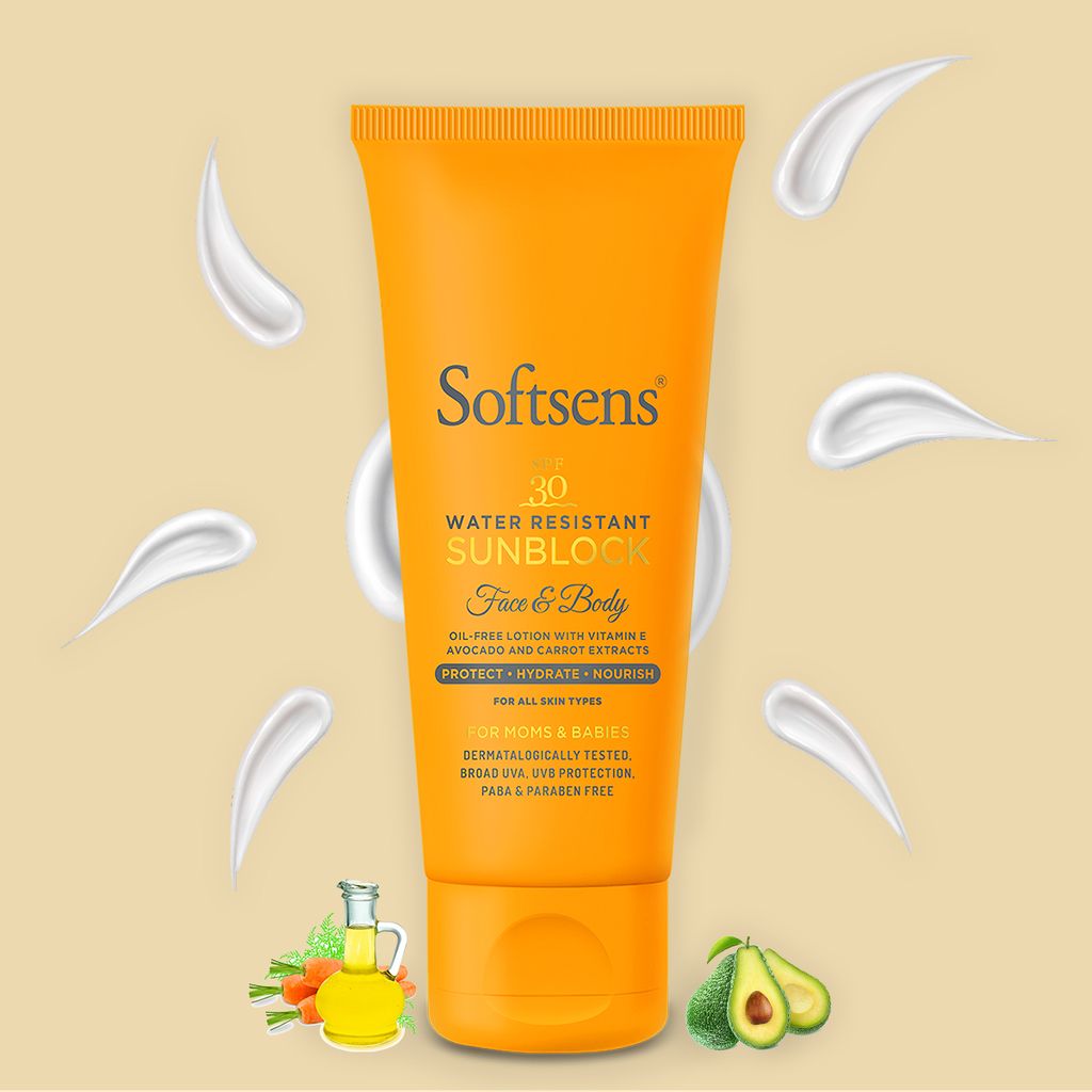 Yes, the Softsens SPF 30+ Sunblock Lotion is formulated to be water-resistant. However, as with any other sunblock, we recommend that you reapply it every 90 minutes to keep skin safe and protected. This lotion also has a dry-touch technology to ensure that it spreads easily without leaving behind any white residue.