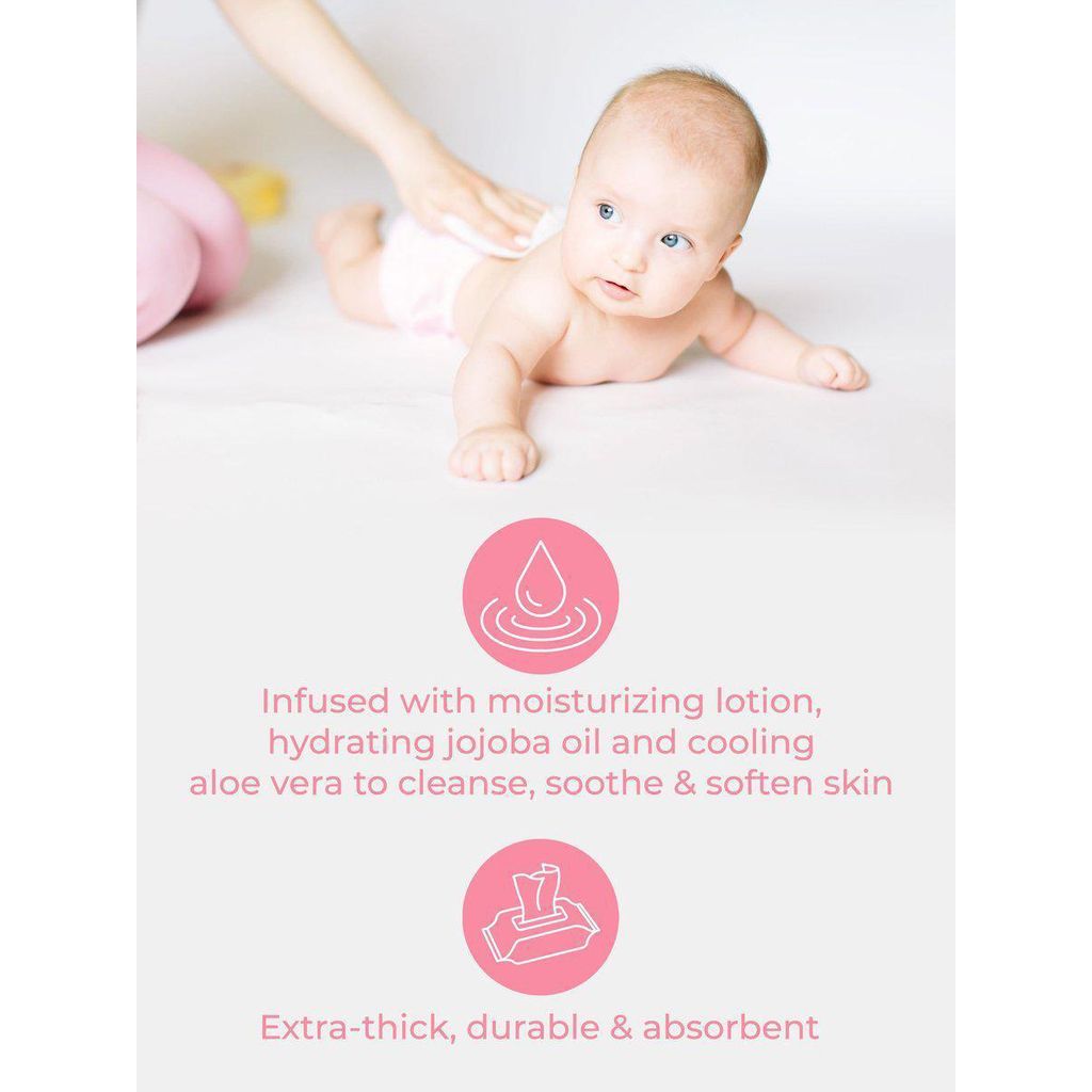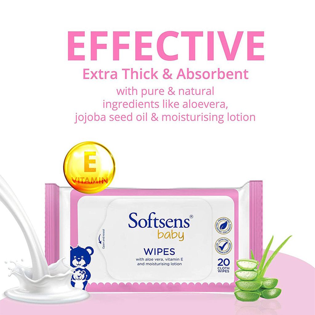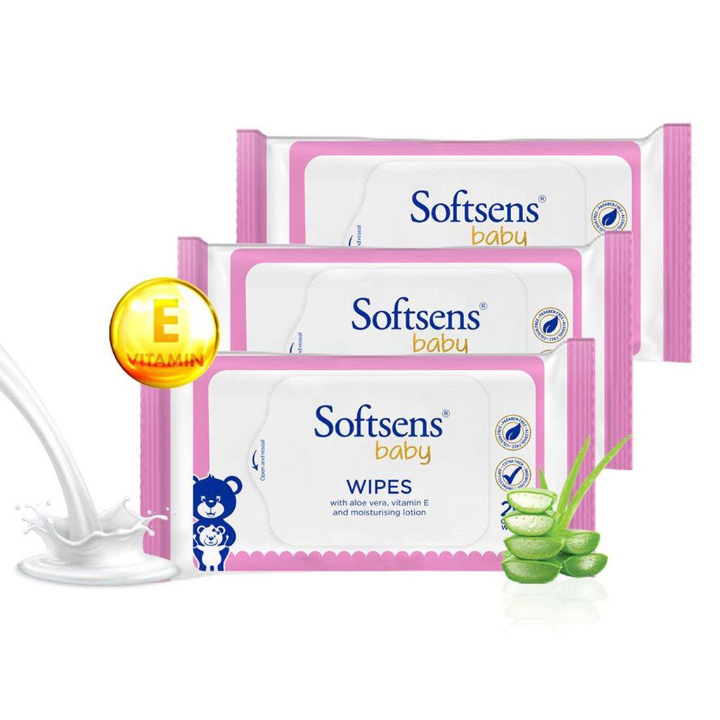 Softsens Baby Wipes are all-natural cloth wipes that are enriched with gentle moisturizing lotion, hydrating jojoba oil and cooling Aloe Vera to soothe baby's delicate skin skin. They are dermatologically tested, approved by pediatricians and free from parabens, colour, alcohol and other harmful chemicals.