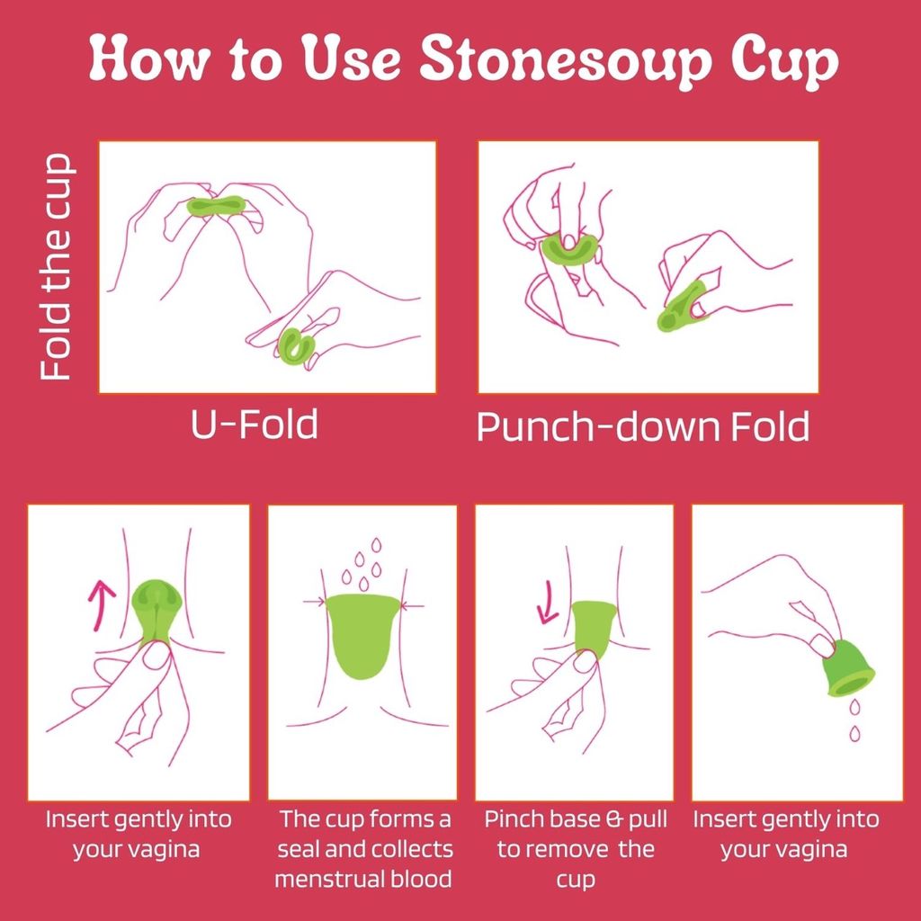 - Stonesoup Wings Green - Soft Menstrual Cup - Sedentary Lifestyle is an easy-to-use menstrual cup, made of nontoxic materials that can be used up to ten years.