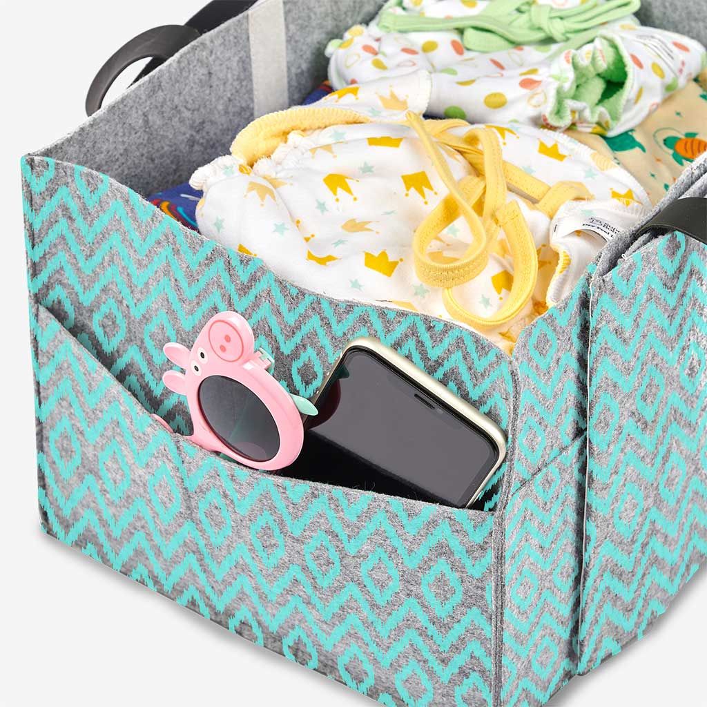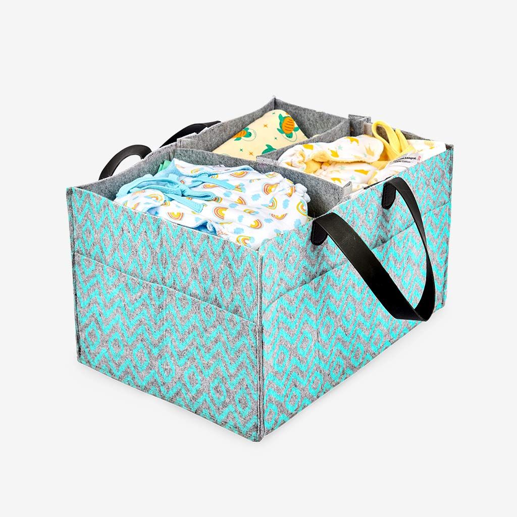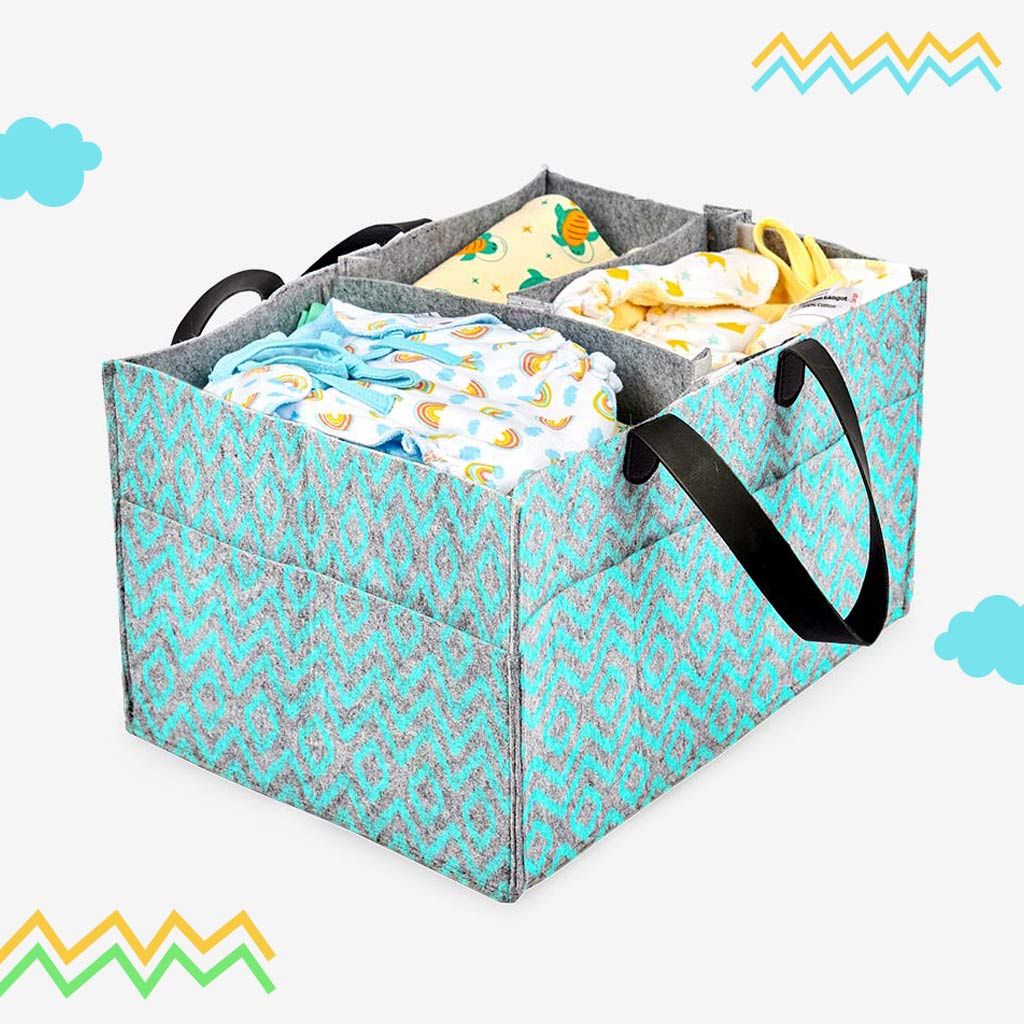 - Stylish and sturdy in build, and big enough to carry all your essentials, small enough to be a handy Diaper Caddy Basket.