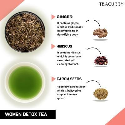 - Teacurry Women Detox Tea consists of ingredients that help rid your body of toxins, thereby improving health and promoting weight loss.