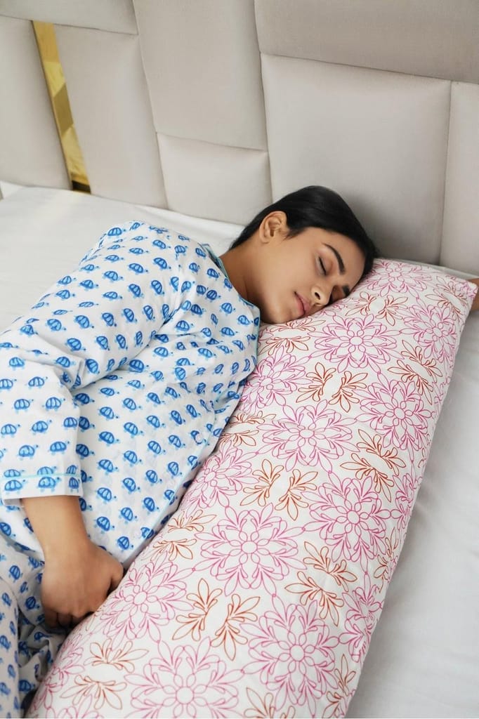 THE PERFECT SIZE FOR YOUR BODY AND WILL ALLOW YOU TO STILL USE YOUR OWN NECK PILLOW! We know that most sleepers will want to continue using their own neck pillow with our body pillow and with good reason, considering in most cases that your support needs for your neck are very different than they are with your body. With The Mama Project's body pillow, you can use your own neck pillow, but it is large enough to shift upward and use for your neck should you wish to do so. With our Cotton fabric, there is more breath ability and conforming stretch that will allow the pillow to self-adjust to you, as well as for you to gather or spread out the Microfiber Filling.