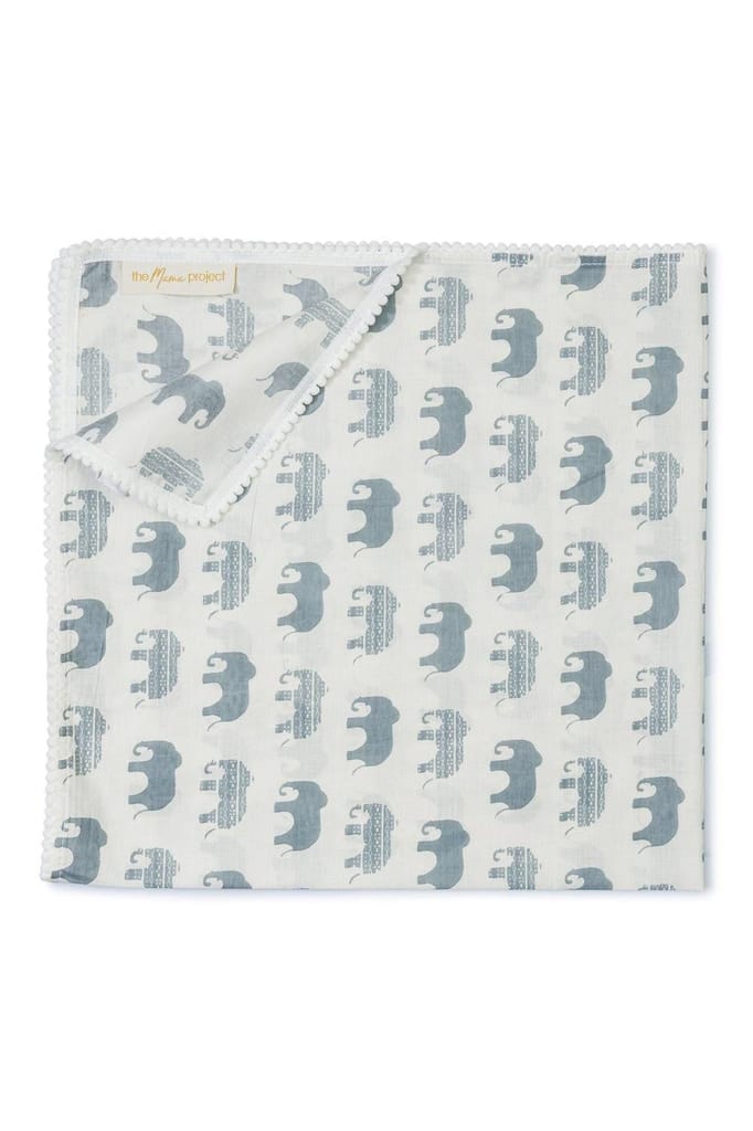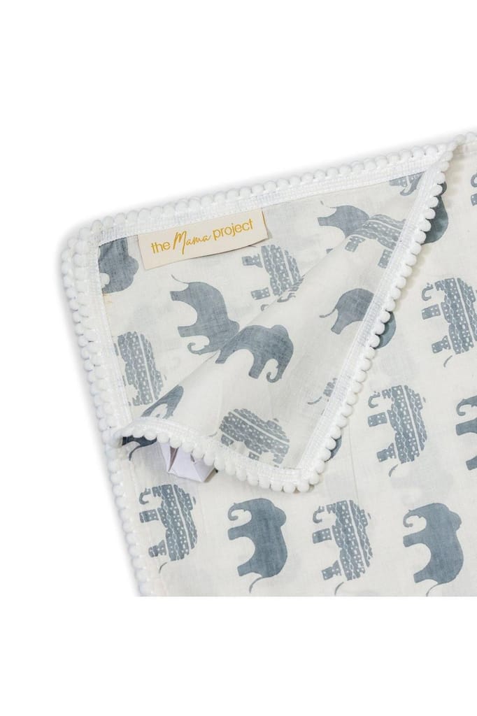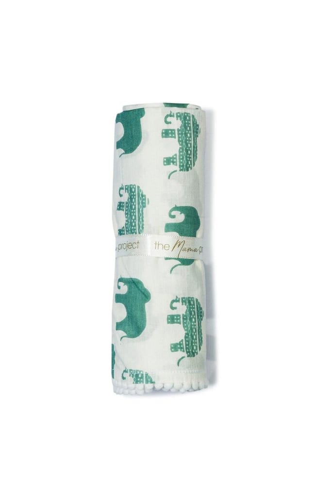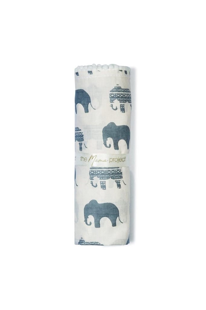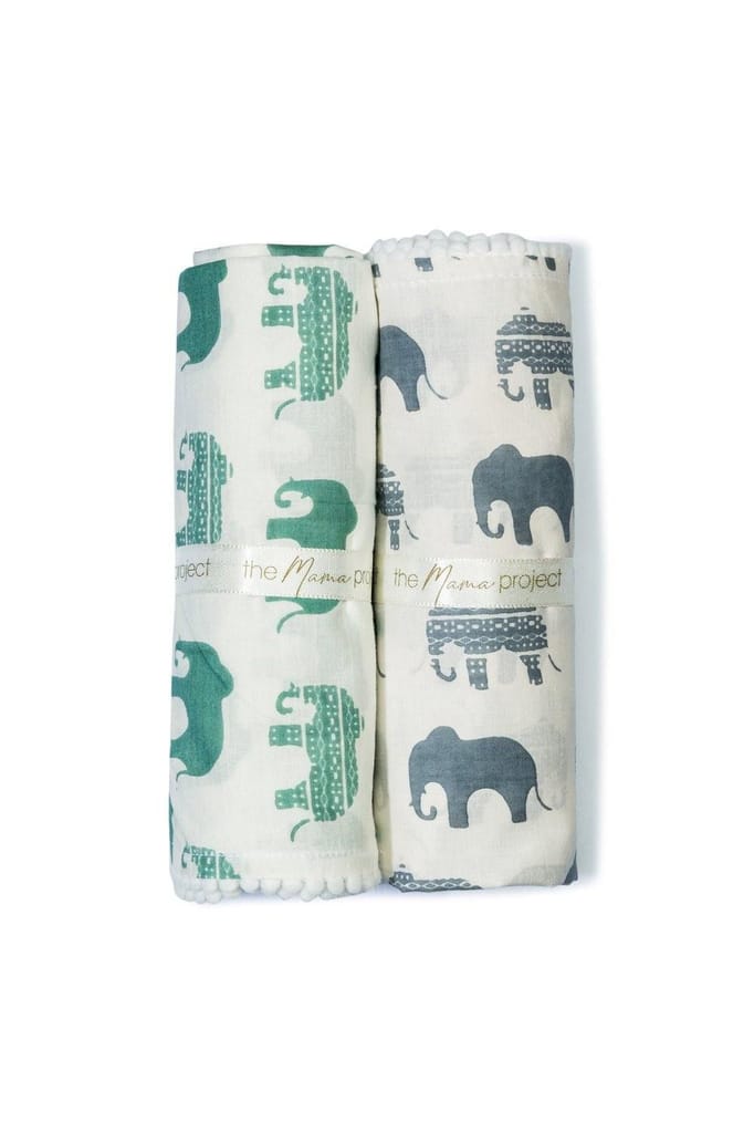 The Mama Project Elephant Parade Organic Muslin Swaddle Sheet Gift Bundle- Pack of 2