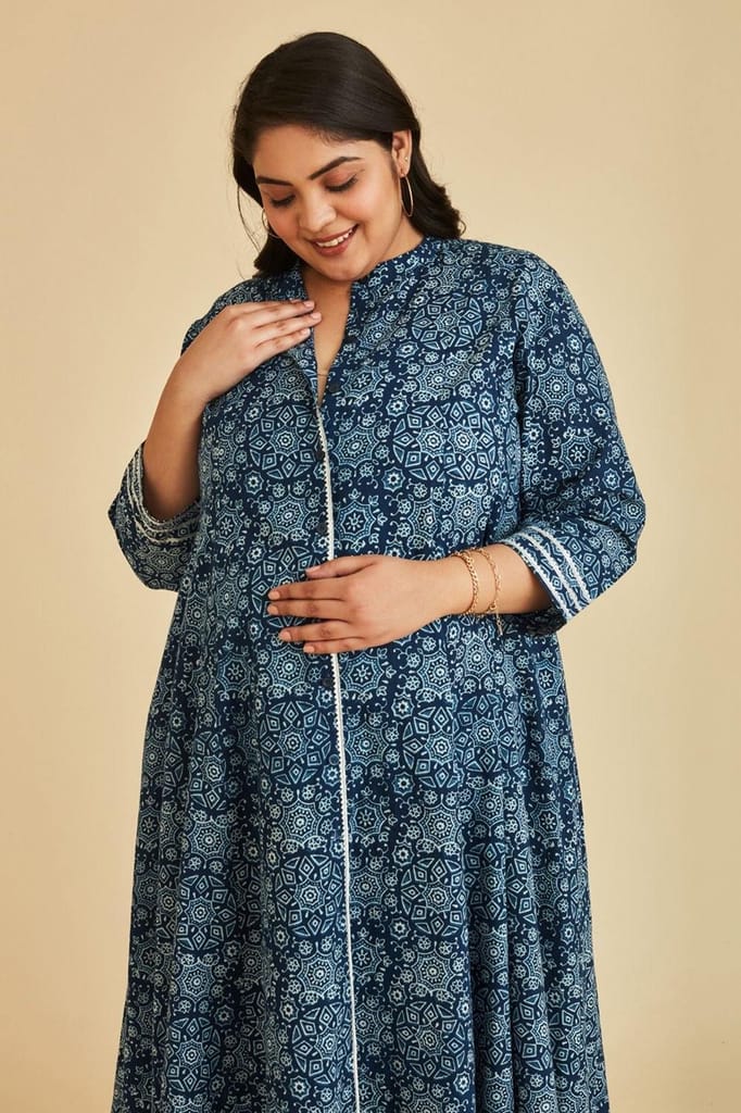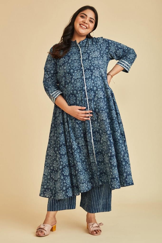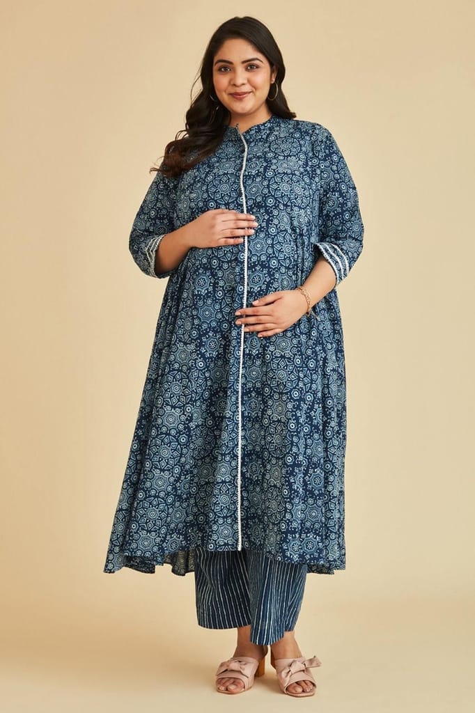 - The Mama Project Grace Nursing & Maternity Indigo Kalidar Kurta Set