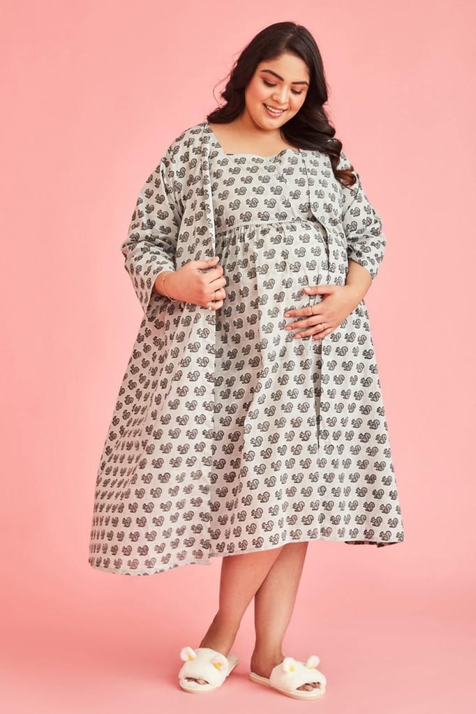 - The Mama Project Squirrell Grey Dress & Robe Maternity Night Set