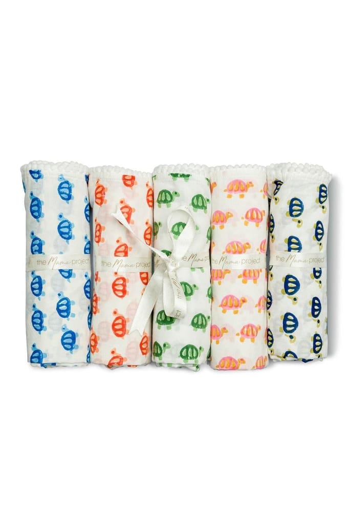 The Mama Project Turtle Love Organic Muslin Swaddle Sheet Gift Bundle- Pack of 5