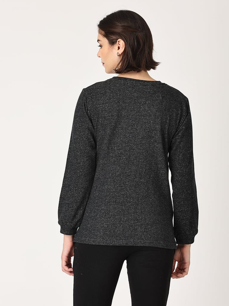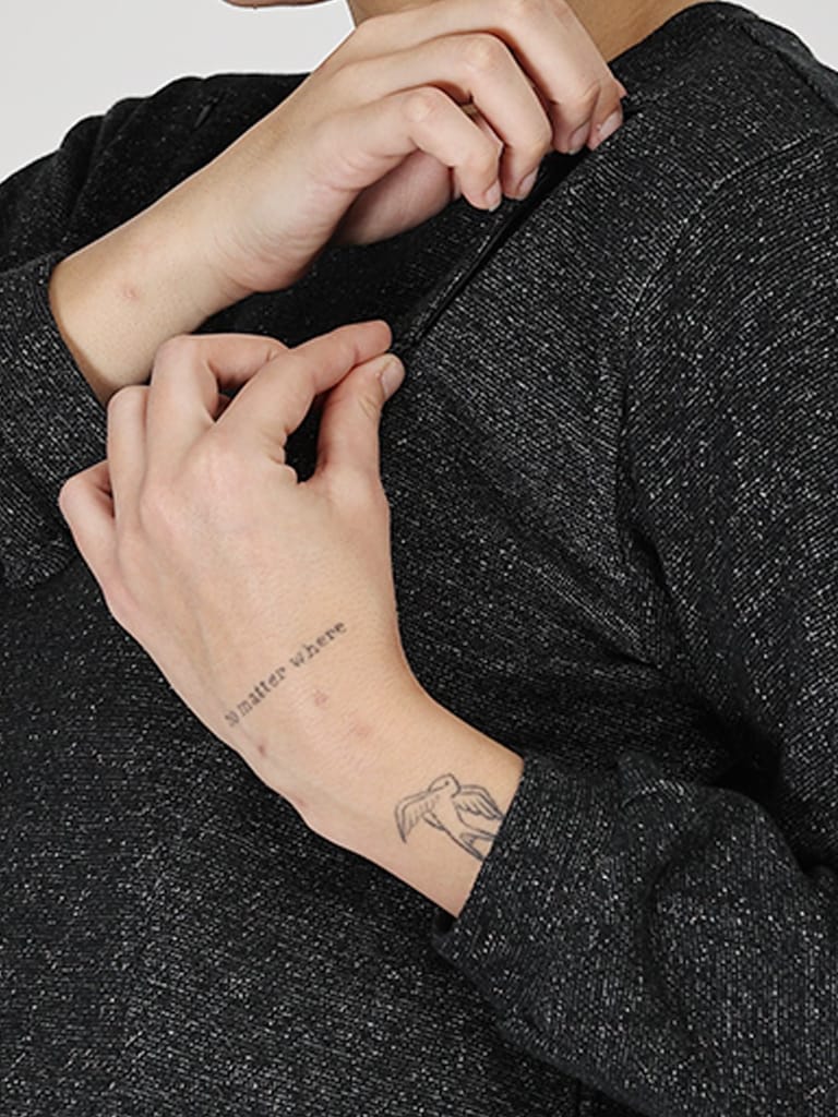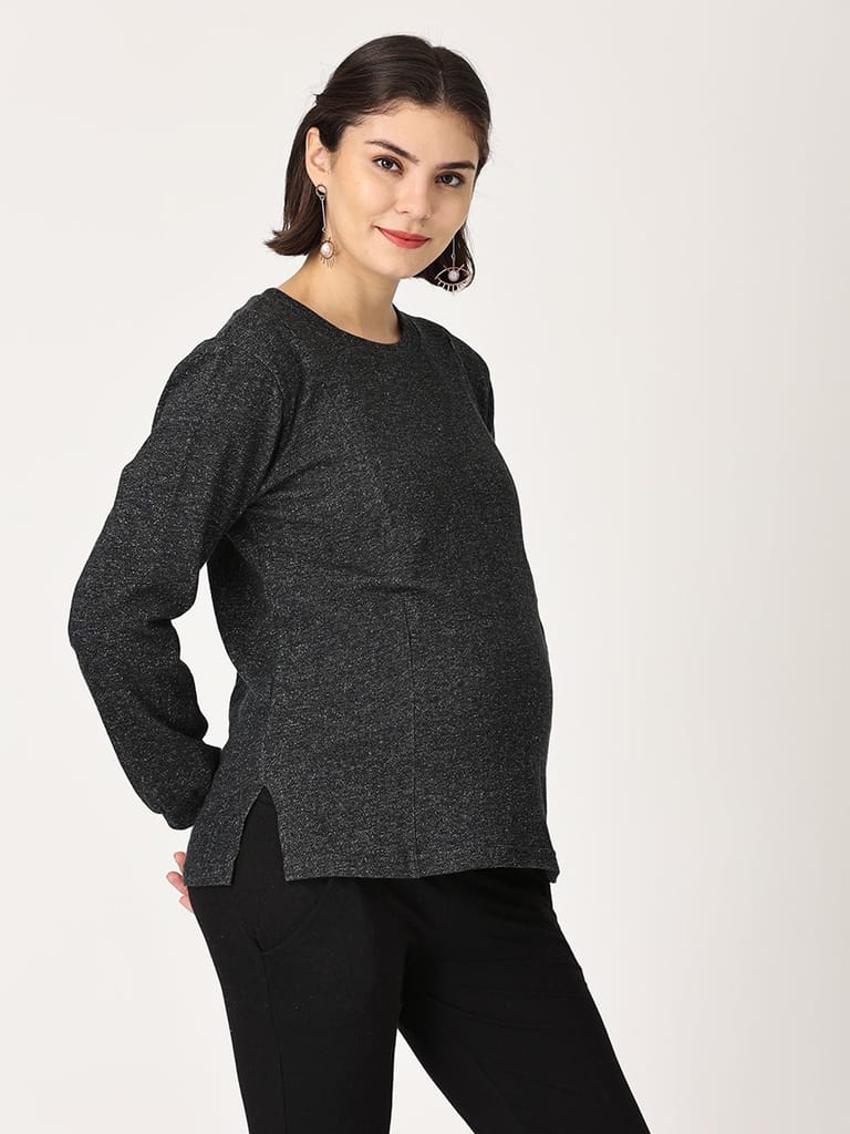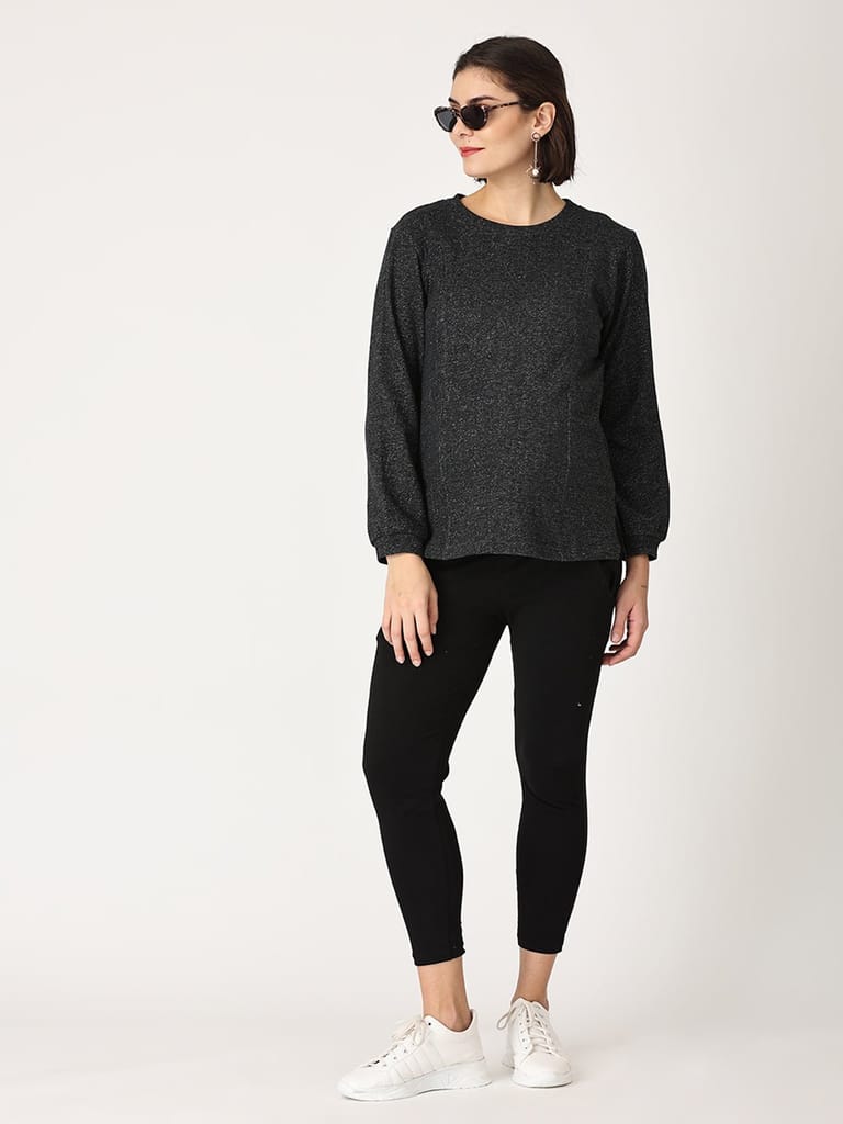 • Full Sleeves Crew neck Black Shimmer Sweatshirt with Nursing Details Fleece Fabric Princess.
