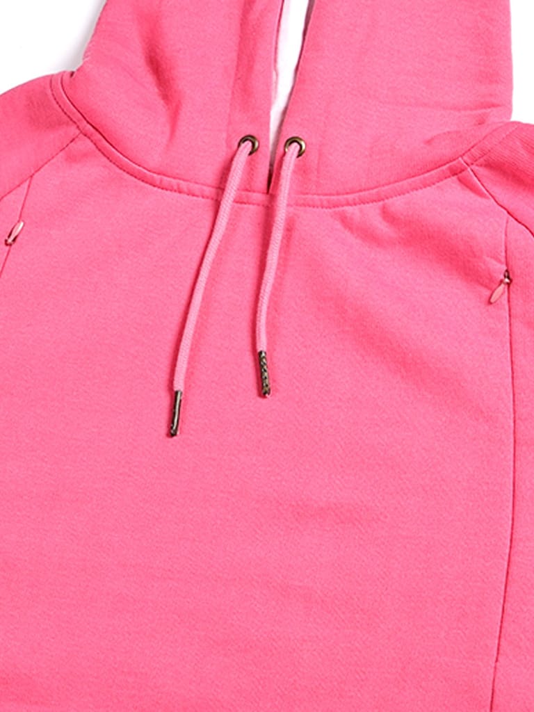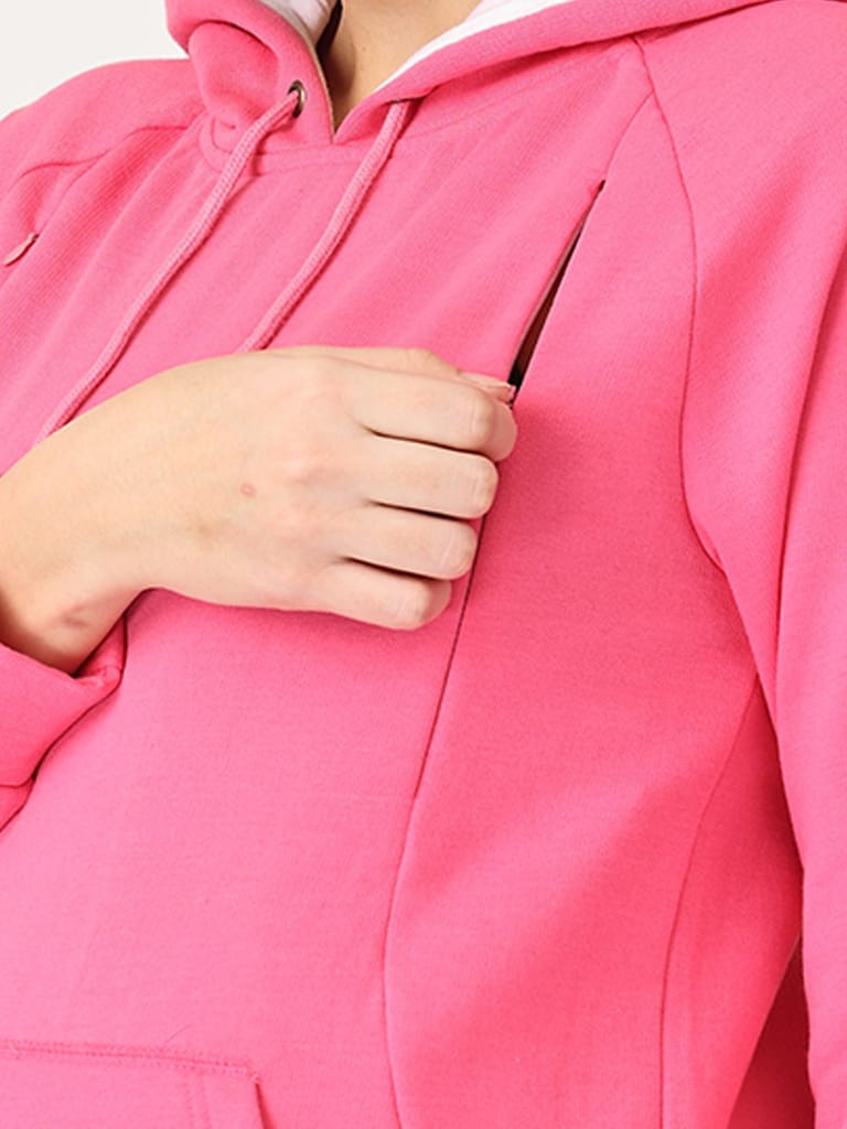 • Pink Hoodie with Drawstrings Fleece Fabrica and Patch Pocket at Front Two Nursing Zippers for Easy Feeding