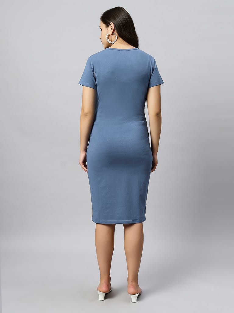 - The dress features a round neck and gather on the hips for the comfortable stretch for your baby bump.