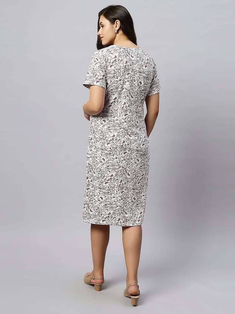 - The dress features a round neck and gather on the hips for the comfortable stretch for your baby bump.